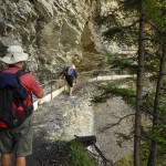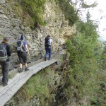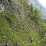Ursprünglich hatte ich mal vor, Tschappina auf den Bus zu gehen, falls die Strecke dann “langweilig” wird, da ich es aber bevorzuge, den Tag im freien statt in einer Büchse auf vier Rädern zu verbringen, entscheide ich mich, bis nach Thusis zu laufen. Da ich so lange im Gasthaus Beverin verweilt habe, treffe ich unterwegs nochmals Eva und Brigitte, welche sehr erstaunt sind, dass ich auf einmal hinter ihnen war.
