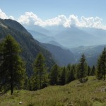 Hier komme ich unter anderem auch ins Gespräch mit zwei pensionierten Frauen von Winterthur, welche den Tag geniessen, um auf den Glaspass-Grat zu laufen. Spannend war auch die Begegnung später mit Köbi, einem GKB Filialleiter in Andeer. Er interessiert sich sehr für den Walserweg, da er diesen nicht kennt. Und so kommen wir ins plaudern und die Zeit vergeht. Wahrscheinlich habe ich so etwa 2h im Restaurant auf der Sonnenterasse verbracht. Von ihm erfahre ich so einiges von der Umgebung, wie starkt die Zweitwohungsinitiative dem Tal bzw. dem Baugewerbe zugesetzt hat, es aber auch seine Richtigkeit hat, dass dies angenommen wurde. Auch kennt er die Leute von Hinterrhein und meinte, dass Johann eben im Winter auch Fondue und Raclette in seinem Keller anbietet. Er wollte das schon lange mal machen, sei aber noch nie dazu gekommen. So beginnen wir auch ein wenig zu philosophieren, wie wichtig es ist, dass man sich Zeit nimmt für gewisse Sachen und diese nicht ewig vor sich hin schieben sollte. Wärhend unserem Gespräch wird mir auch mal wieder bewusst, wie viel man eigentlich im Leben braucht, um zufrieden sein zu können. Es sind nicht all die teuren und schönen Sachen, sondern diese Momente. Alles was ich brauche befindet sich in meinem Rucksack, und es hat noch zu viel Balast darin, den ich herumtrage. Ich bin letztes Jahr 6 Monate nur mit dem Rucksack durch Südamerika gereist und hatte immer alles was ich brauchte, bei mir. Warum ist man dazu geneigt, so viel Balast anzueignen, welcher uns dann unflexibel macht, der uns daran hindert, mal etwas zu riskieren? Es sind nicht die vielen Sachen / Gadgets die mich langfristig zufrieden machen sonder eben solche Begegnungen und Momente, die mich erfüllen. Dazu braucht man Zeit und das ist Luxus, dessen werde ich mir je länger je mehr sehr bewusst.